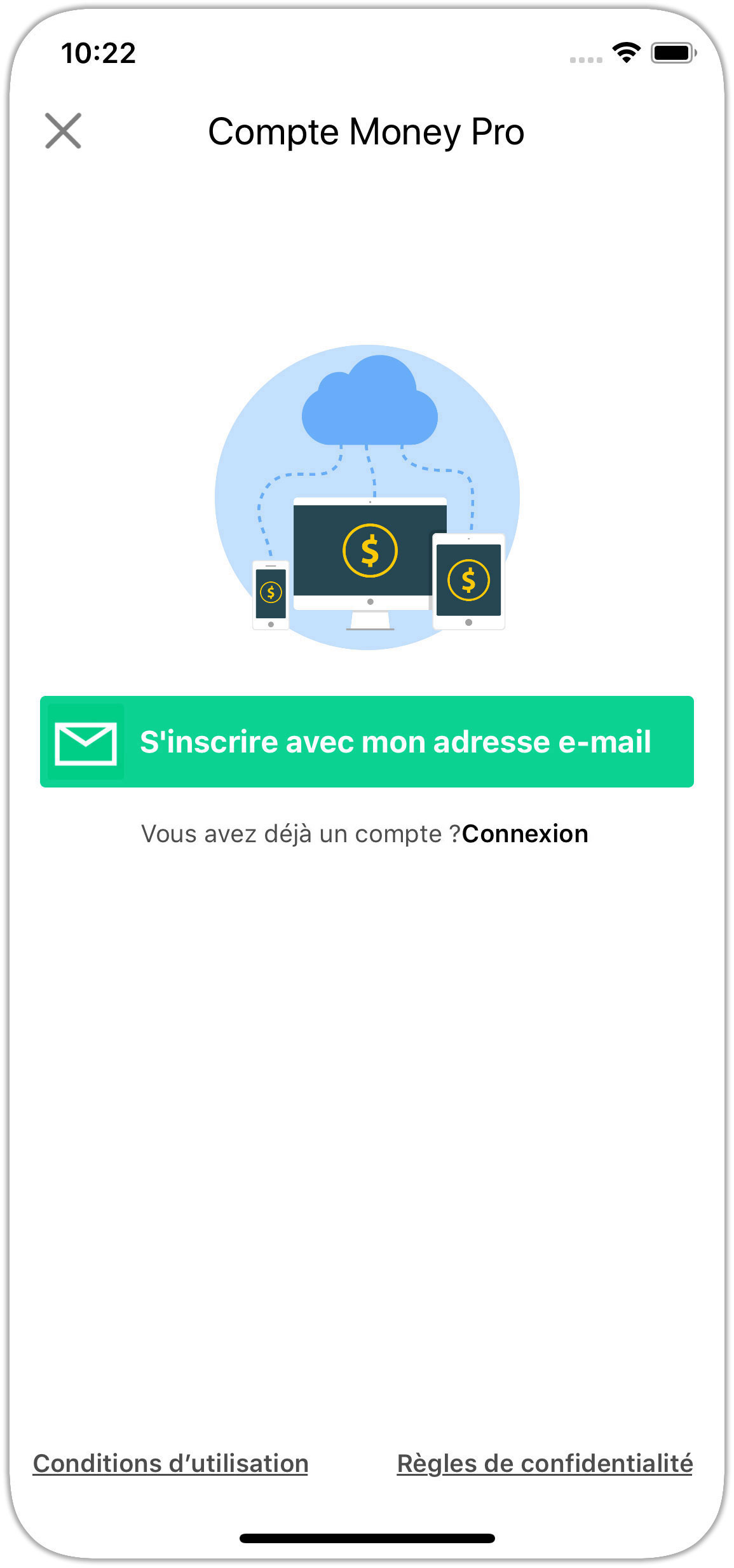 5. Pour configurer un autre appareil (Mac, iOS, Android), allez dans Plus > Compte Money Tracker et connectez-vous à votre compte Money Tracker.