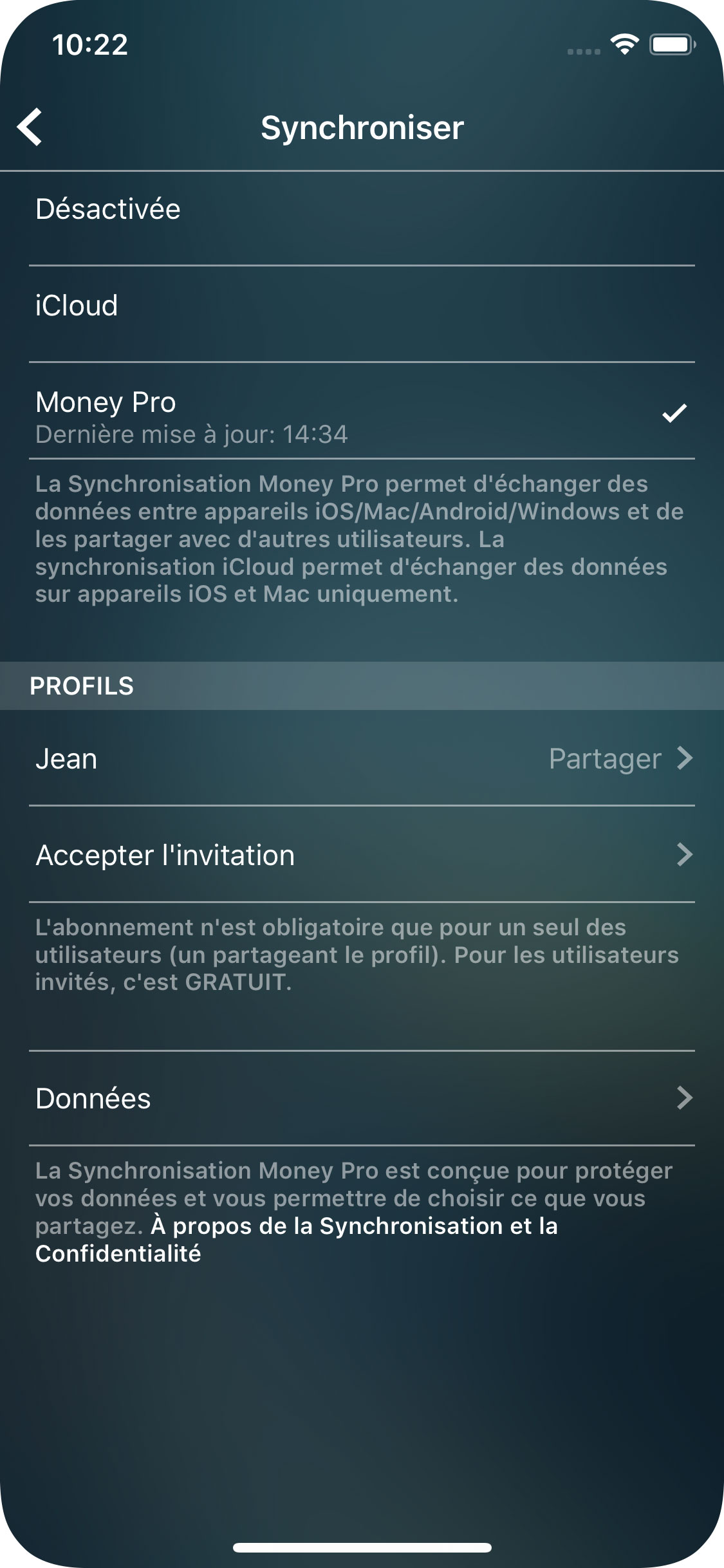 Synchronisation Money Tracker (iOS/Android/Mac/Windows et Synchronisation familiale)