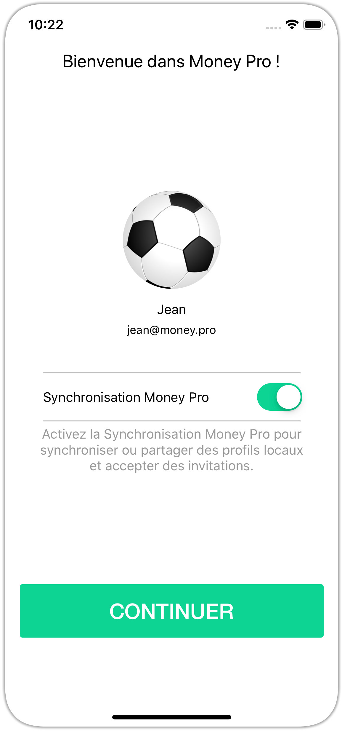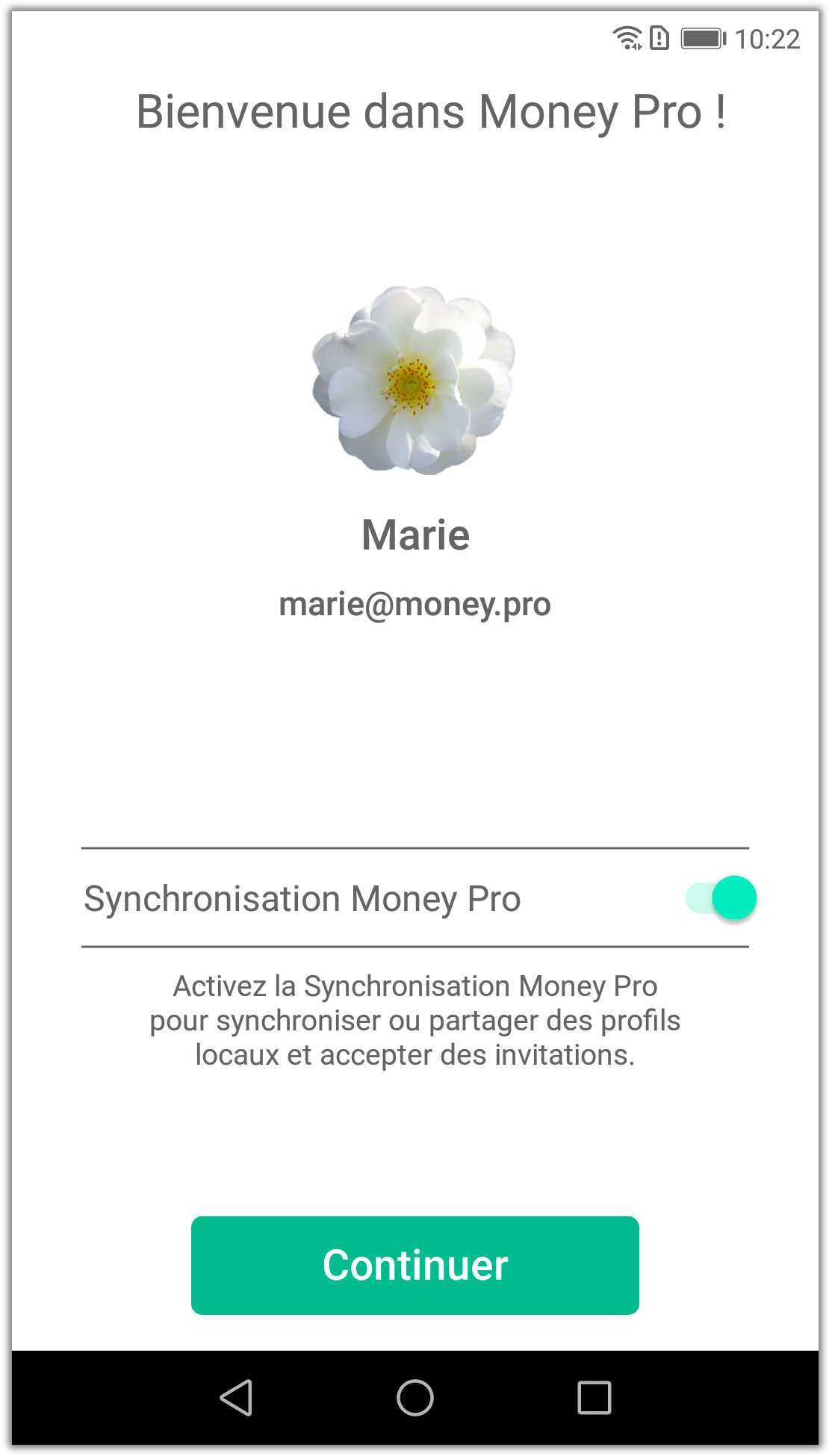 6. Activez la Synchronisation Money Tracker et appuyez sur Continuer.